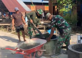 Barito Selatan – Satgas TNI Manunggal Membangun Desa (TMMD) Reguler ke-124 Kodim 1012/Buntok tengah mengerjakan pembuatan cincin sumur gali di …