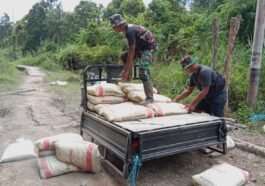 Dalam pembangunan jalan penghubung Desa Talio, Kecamatan Karau Kuala, Kabupaten Barito Selatan, Satgas TMMD Reguler ke-124 Kodim 1012/Buntok menghadapi tantangan …