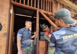 Semangat Anggota TNI yang tergabung dalam satgas TMMD ke-124 Kodim 1710/Mimika, mulai melakukan pekerjaan pemasangan Pintu dan Jendela untuk mempercepat …