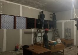 Barito Selatan – Pekerjaan renovasi ruang kelas 1 SDN 2 Karau Kuala oleh Satgas TMMD Reguler ke-124 Kodim 1012/Buntok menunjukkan …