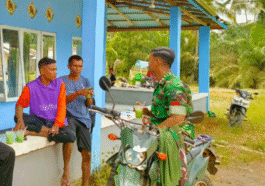 Mempawah — Seusai gotong royong membersihkan halaman masjid, warga bersama prajurit Satgas TMMD Ke-124 duduk santai dan berbincang sambil menikmati …