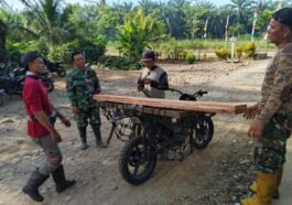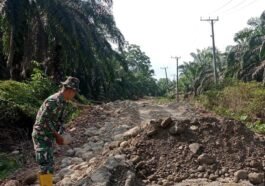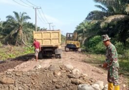 Dalam proses peningkatan jalan sepanjang 400 meter di Desa Wonosalam, Satgas TMMD ke-125 Kodim 0428/Mukomuko turut turun tangan langsung membantu …