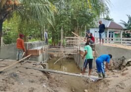 Kendari – Pengerjaan jembatan dalam program TMMD ke-127 Kodim 1417/Kendari memasuki tahap krusial di Kelurahan Sambuli, Minggu (22/2). Personel Satgas …