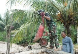 Kendari – Personel Satgas TNI Manunggal Membangun Desa (TMMD) ke-127 Kodim 1417/Kendari terus memacu progres pembangunan talud di salah satu …