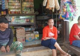 Kotawaringin Timur-Satgas TMMD Reg ke -127 Kodim 1015/Sampit, Pratu Haryanto melaksanakan kegiatan komunikasi sosial di Warung ibu Poniran, Desa Tri …