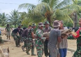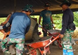 Kotawaringin Timur – Personel Satuan Tugas (Satgas) TNI Manunggal Membangun Desa (TMMD) Reguler ke-127 Kodim 1015/Sampit bersama warga Desa Tribuana, …