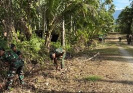 Kaimana – Personel Satgas TNI Manunggal Membangun Desa (TMMD) ke-127 dari Kodim 1804/Kaimana melaksanakan kegiatan finishing pembukaan jalan di Kampung …