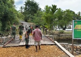 Kaimana – Di sela-sela kegiatan pembangunan jembatan dalam program TNI Manunggal Membangun Desa (TMMD) ke-127, personel Satgas Kodim 1804/Kaimana memanfaatkan …
