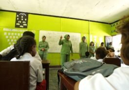 Kaimana – Ketua Persit Kartika Chandra Kirana Cabang XL Kodim 1804 Koorcabrem 182 PD XVIII/Kasuari, Ny. Kiky Sulistyo bersama anggota …