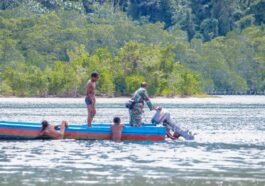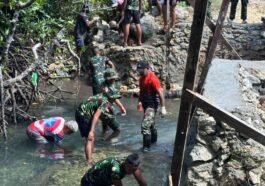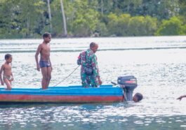 Kaimana – Satgas TMMD 127 Kodim 1804/Kaimana memperlihatkan momen mengharukan sekaligus heroik saat seorang anak asli Kampung Sisir membantu Babinsa …