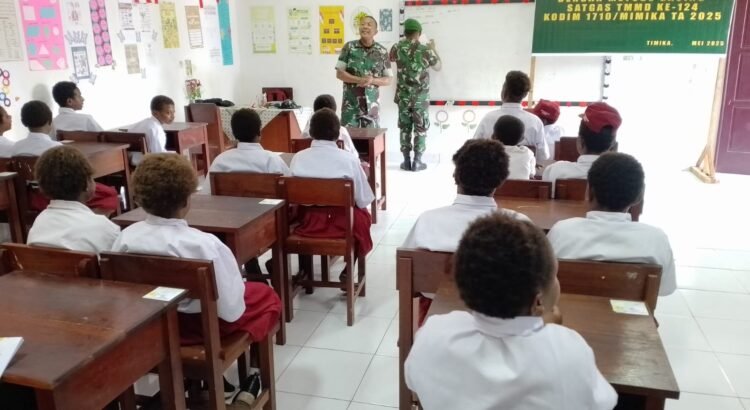 Suasana ceria dan penuh semangat terlihat di SDN Pigapu, Distrik Iwaka, saat Anggota TMMD Kodim 1710/Mimika hadir untuk memberikan pembelajaran Matematika Gasing kepada siswa-siswi Kelas 3. Kegiatan ini menjadi momen istimewa bagi para murid yang antusias menyerap materi dengan cara yang menyenangkan dan berbeda. Senin, 26/5/2025.