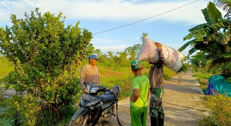 Mempawah — Wujud nyata kemanunggalan TNI dan rakyat kembali terlihat dalam pelaksanaan TMMD Reguler ke-124 Kodim 1201/Mempawah. Kali ini, sejumlah anggota Satgas TMMD membantu seorang warga, Pak Hamka, memikul rumput untuk pakan ternak di Desa Purun Besar.