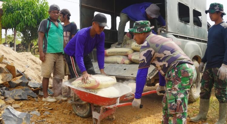 “Kami memastikan material, khususnya semen, sudah berada di lokasi pekerjaan agar proses pembangunan siring jalan dapat berjalan sesuai rencana dan target waktu yang telah ditentukan,” ujar Kopda Kasmin.