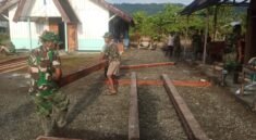 Kaimana – Komandan Kodim 1804/Kaimana, Sulistyo Nugroho, memberikan penjelasan mengenai sasaran fisik yang telah dilaksanakan dalam program TMMD ke-127 kepada Bupati Kaimana dan jajaran Forum Koordinasi Pimpinan Daerah (Forkopimda) saat kegiatan penutupan TMMD di Kampung Marsi, Kabupaten Kaimana.