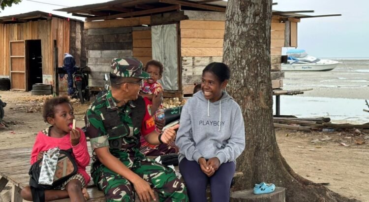 Kaimana – Suasana penuh keakraban terlihat saat Komandan Satuan Tugas (Dansatgas) TNI Manunggal Membangun Desa (TMMD) ke-127 Kodim 1804/Kaimana, Letkol Kav Sulistyo Nugroho, bercengkrama dengan masyarakat Kampung Namatota, Distrik Kaimana, Kabupaten Kaimana, Jumat (06/03/2026).