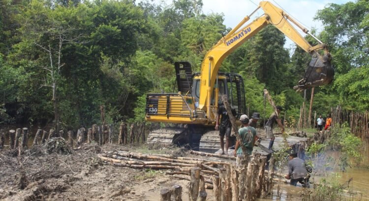 Barito Selatan, 30 Mei 2025 – Satgas TMMD Kodim 1012/Buntok bersama masyarakat Desa Talio, Kecamatan Karau Kuala, Kabupaten Barito Selatan, bekerja sama memasang cerucuk sebagai bagian dari pembangunan jalan penghubung desa. Kegiatan ini dilakukan secara gotong royong dan bahu membahu.