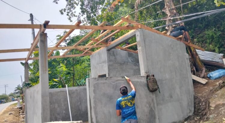 Dengan terpasangnya kerangka atap, pembangunan fasilitas sanitasi tersebut telah menunjukkan progres signifikan.