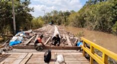 Cerucuk yang terbuat dari batang kayu ini merupakan bahan penting untuk menopang struktur dasar jalan di lahan gambut. Kayu-kayu tersebut harus dipotong dengan ukuran tertentu agar dapat dipasang sesuai kebutuhan teknis di lapangan. Proses pemotongan ini dilakukan secara manual dengan bantuan alat chainsaw dan dikerjakan secara bergantian oleh personel Satgas dan warga.