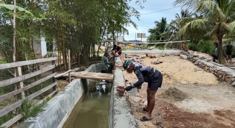 Melalui program yang digagas Kodim 1417/Kendari, pengerjaan plesteran pondasi dilakukan secara bersama-sama untuk memastikan struktur jembatan lebih kokoh dan rapi.