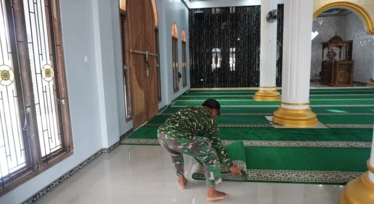 Kotawaringin Timur – Menjelang pelaksanaan Sholat Jumat, personel Satgas TNI Manunggal Membangun Desa (TMMD) Reguler ke-127 Kodim 1015/Sampit melaksanakan kegiatan pembersihan Masjid Nurul Mukhlisin yang berada di Desa Bukit Indah, Kecamatan Telaga Antang, Kabupaten Kotawaringin Timur, Jumat (06/03/2026).