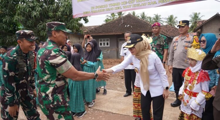 PESAWARAN – Kedatangan Waaster Panglima TNI, Bambang Hadi Suseno di Desa Tanjung Rejo, Kecamatan Way Khilau, Kabupaten Pesawaran, disambut meriah oleh masyarakat setempat. Kehadiran Waaster Panglima TNI tersebut dalam rangka melaksanakan kegiatan Pengawasan dan Evaluasi (Wasev) program TNI Manunggal Membangun Desa (TMMD) ke-127 yang digelar oleh Kodim 0421/Lampung Selatan.
