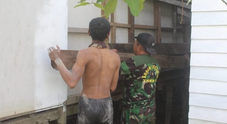 Barito Selatan – Untuk percepatan pengerjaan sasaran fisik TMMD Reguler ke-124 Kodim 1012/Buntok telah memasuki tahap pemasangan dinding luar rumah tidak layak huni (RTLH). Satgas TMMD bersama warga bahu-membahu bergotong royong menyelesaikan pemasangan dinding, Bertempat di Desa Talio, Kecamatan Karau Kuala, Kabupaten Barito Selatan, Pada hari Sabtu (24/05/2025)