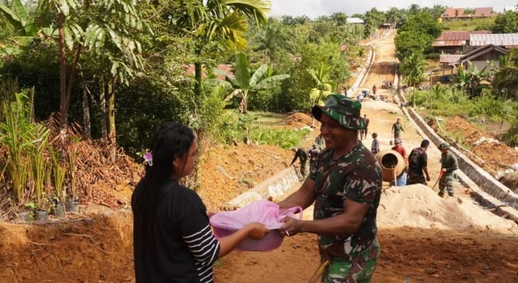 Kotawaringin Timur – Kebersamaan antara masyarakat dan Satgas TMMD Reguler ke-127 Kodim 1015/Sampit semakin terasa dalam pelaksanaan program pembangunan di Desa Tribuana, Kecamatan Telaga Antang, Kabupaten Kotawaringin Timur. Warga setempat memberikan kue hasil buatan sendiri kepada anggota Satgas TMMD sebagai bentuk dukungan moril, Rabu (11/02/2026).