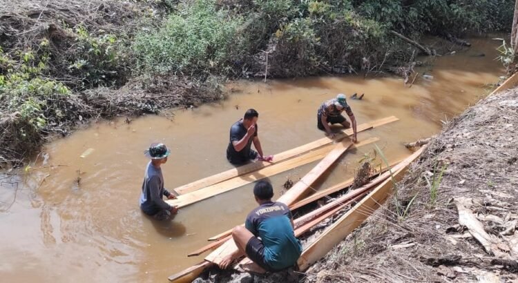Barito Selatan – Satgas TMMD Kodim 1012/Buntok menggunakan cara unik dengan memanfaatkan kayu yang mengapung untuk mengangkut kayu melalui sungai menuju lokasi kegiatan TMMD. Meskipun proses ini membuat anggota satgas harus berbasah-basahan, metode ini berhasil meringankan beban saat pengangkutan.
