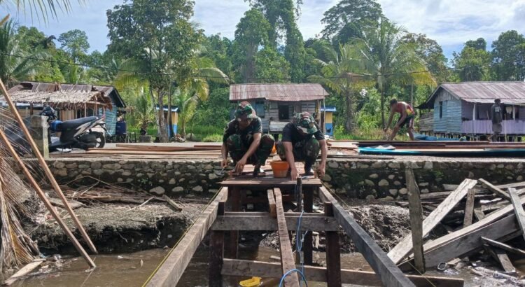 Memasuki akhir minggu ke dua pasca pembukaan TMMD di buka, kembali menunjukkan komitmennya dalam meningkatkan kesejahteraan masyarakat dengan membangun jembatan penghubung menuju rumah bapak Yopy yang menjadi sasaran 5 dalam pelaksanaan TMMD, di Kampung Pigapu, Distrik Iwaka.