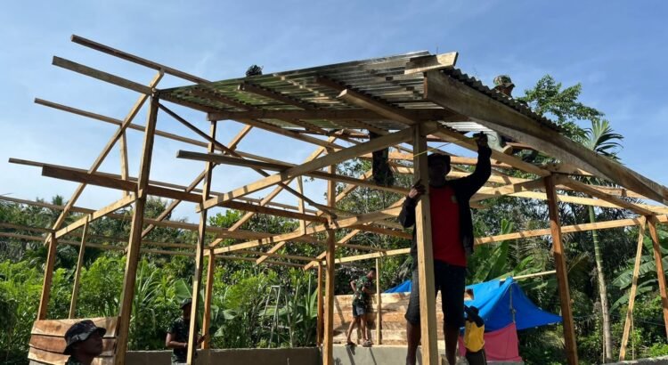 Kendari – Personel Satgas TMMD ke-127 dari Kodim 1417/Kendari bersama warga Kelurahan Sambuli terus mempercepat pembangunan Rumah Tidak Layak Huni …