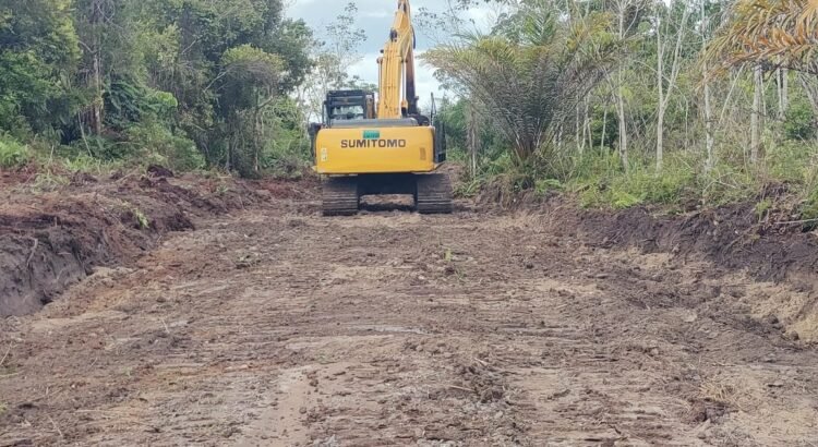 Barito Selatan – Pembukaan jalan sebagai salah satu sasaran fisik dalam program TNI Manunggal Membangun Desa (TMMD) Ke-124 Kodim 1012/Buntok …
