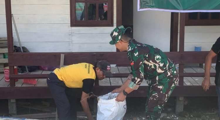 Barito Selatan – TNI Manunggal Membangun Desa (TMMD) tidak hanya berbicara soal pembangunan fisik, namun juga peduli terhadap kebersihan lingkungan. Hal itu dibuktikan oleh Satgas TMMD Kodim 1012/Buntok yang bersama warga setempat melakukan aksi pembersihan sampah di sekitar lokasi kegiatan TMMD.