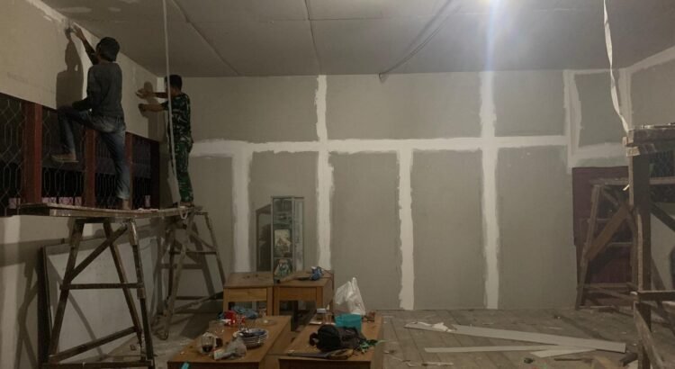 Barito Selatan – Komitmen Satgas TMMD Reguler ke-124 Kodim 1012/Buntok dalam mendukung pendidikan di pelosok terus diwujudkan. Salah satunya melalui renovasi ruang kelas 1 SDN 2 Karau Kuala yang kini memasuki tahap pemasangan dinding bagian dalam, Kamis malam (22/05/2025), di Desa Talio, Kecamatan Karau Kuala.