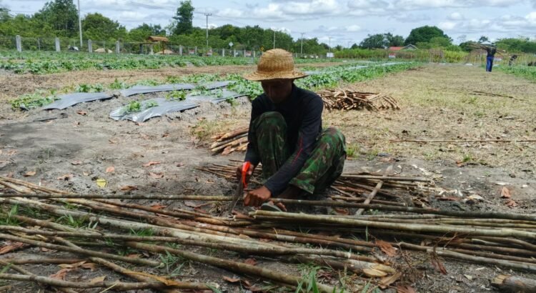 Barito Selatan, 28 Mei 2025 — Satgas TMMD Kodim 1012/Buntok melaksanakan pemotongan kayu rambatan sayuran di lokasi Ketahanan Pangan yang berada di Jalan Urbanus Marcun, Desa Sababillah, Kecamatan Dusun Selatan, Kabupaten Barito Selatan. Kegiatan ini sebagai bagian dari program peningkatan produksi pertanian warga.