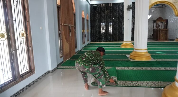 Kotawaringin Timur – Semangat kebersamaan antara TNI dan masyarakat kembali terlihat saat Satgas TMMD Reguler ke-127 Kodim 1015/Sampit bergotong royong membersihkan Masjid Nurul Mukhlisin sebelum pelaksanaan Sholat Jum’at, Jumat (27/02/2026).