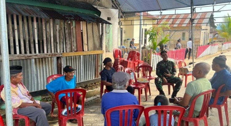 Suasana akrab terlihat saat prajurit berbincang santai dengan warga di sela aktivitas mereka. Interaksi tersebut menciptakan rasa kedekatan yang mampu memperkuat solidaritas antara aparat dan masyarakat.