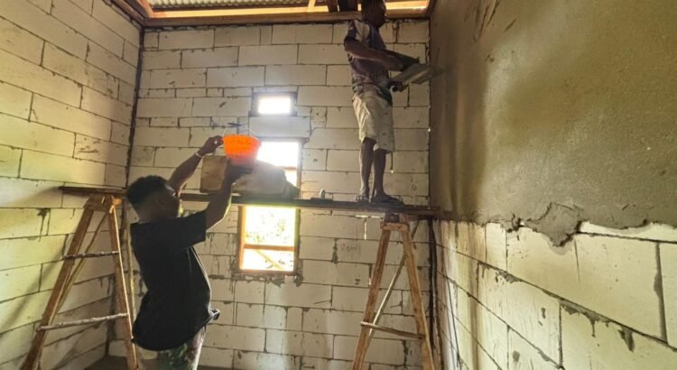 Dalam pelaksanaan pekerjaan, personel Satgas dan masyarakat bekerja secara kompak menyelesaikan tahapan pembangunan rumah. Pemasangan plester dilakukan guna memperkuat struktur bangunan sekaligus meningkatkan kenyamanan hunian.