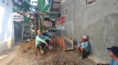 Proses pencampuran melibatkan kerja sama antara petugas dan warga setempat. Mereka bergantian mengaduk dan mengangkut campuran ke area pengecoran, menunjukkan semangat gotong royong dalam pembangunan infrastruktur desa.
