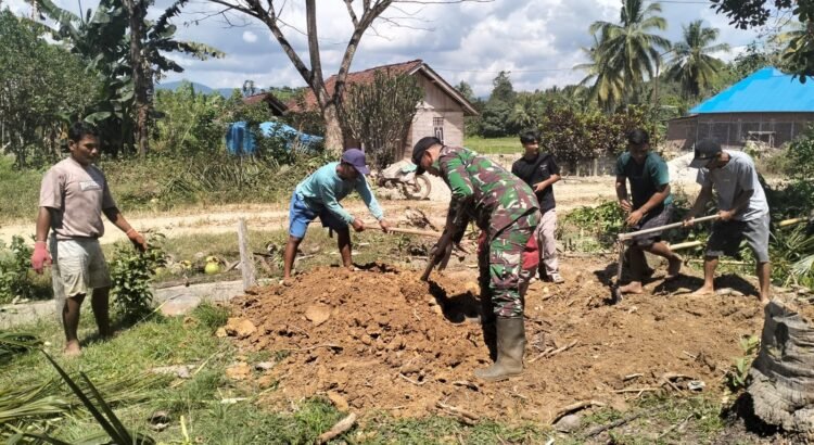 Konawe _ Anggota Satgas TMMD (Tentara Manunggal Membangun Desa) 125 Kodim 1417/Kendari bersama masyarakat melakukan penggalian septic tank MCK di titik ke empat (4), di Dusun II, Desa Nekudu, Kec. Asinua, Kab. Konawe, Rabu (30/7).