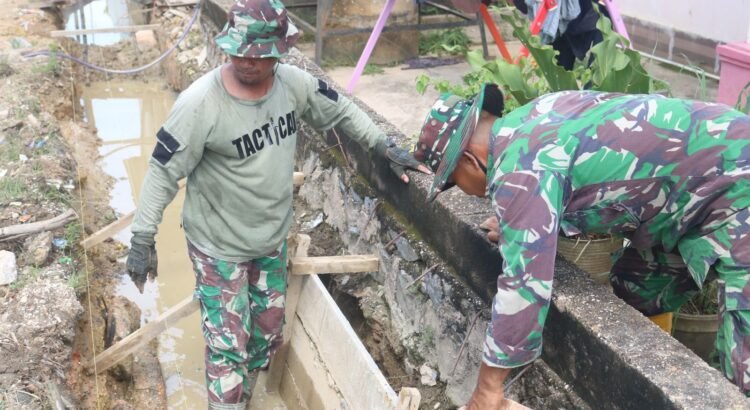 KENDARI – Personel Satgas TMMD ke-127 dari Kodim 1417/Kendari terus memacu pengerjaan saluran drainase bersama warga setempat, Senin (2/3). Di bawah terik matahari Kota Kendari, semangat gotong royong tetap menyala demi mempercepat penyelesaian sasaran fisik.