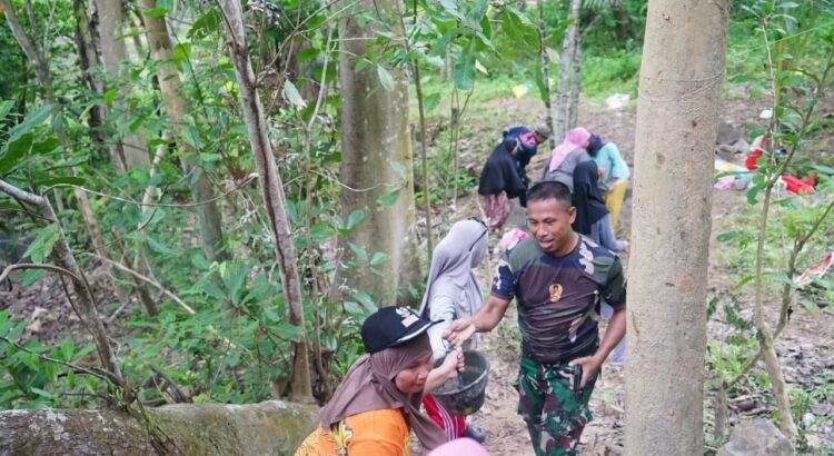 Di bawah teriknya matahari, prajurit TNI dan warga setempat tampak kompak mengangkut material semen serta batu melewati medan yang cukup menantang. Kerja sama ini dilakukan untuk mempercepat penyelesaian fasilitas air bersih yang selama ini menjadi kebutuhan utama masyarakat.