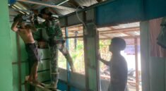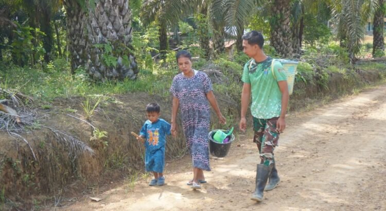 Kotawaringin Timur – Kedekatan antara Satgas TMMD Reguler ke-127 Kodim 1015/Sampit dengan masyarakat terlihat nyata saat pengerjaan Rumah Tidak Layak Huni (RTLH) di Desa Tri Buana, Kecamatan Telaga Antang, Kamis (05/03/2026). Seorang anggota Satgas menghentikan pekerjaannya untuk membantu seorang ibu yang melintas membawa tas Lanjung.