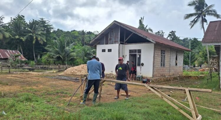 Prajurit TNI bersama warga setempat bahu-membahu melakukan perakitan besi tulangan sebagai bagian dari pembangunan infrastruktur desa. Proses ini menjadi tahapan penting untuk memperkuat struktur sebelum memasuki tahap pengecoran.