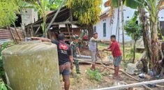 Salah satu pekerjaan yang sedang dilakukan adalah pembangunan dapur layak huni bagi warga penerima manfaat. Dalam prosesnya, personel TNI bersama masyarakat setempat bekerja sama menyelesaikan pemasangan rangka, atap, serta dinding kayu bangunan dapur.