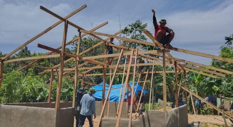 Pantauan di lokasi menunjukkan bahwa kerangka atap rumah telah terpasang dengan rapi, sementara dinding bangunan juga sudah berdiri tegak sebagai bagian dari tahapan pembangunan yang terus dikebut oleh personel Satgas TMMD.