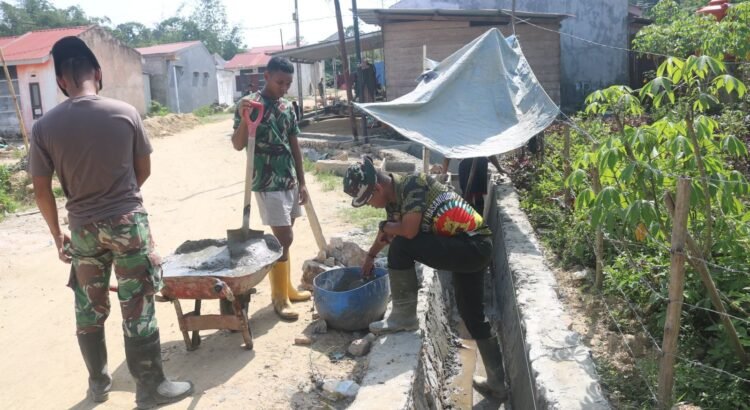 Pada tahap terbaru, sejumlah personel Satgas terlihat melakukan pekerjaan plasteran pada dinding saluran air atau drainase yang menjadi salah satu sasaran fisik program TMMD.