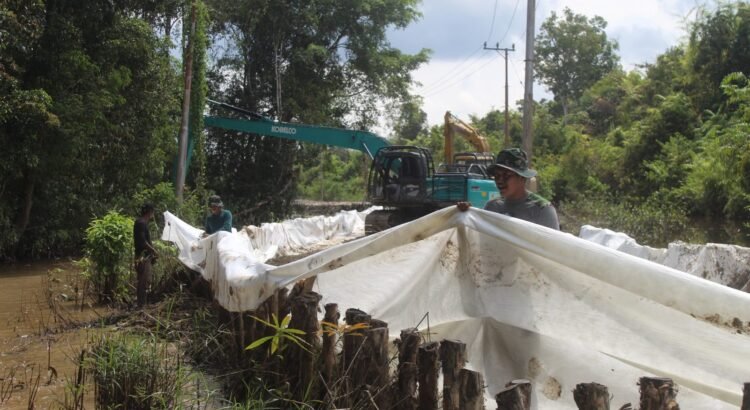 Barito Selatan, 1 Juni 2025 – Satgas TMMD ke-124 Kodim 1012/Buntok terus mempercepat proses pembangunan jalan desa di Desa Talio, Kecamatan Karau Kuala, Kabupaten Barito Selatan. Salah satu tahap penting yang kini sedang dikebut adalah pemasangan geotekstil atau giotex sebagai dasar penguat badan jalan.
