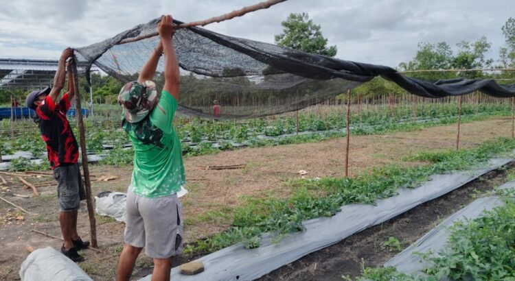 Barito Selatan, 1 Juni 2025 – Satgas TNI Manunggal Membangun Desa (TMMD) ke-124 Kodim 1012/Buntok melaksanakan kegiatan pemasangan jaring buah di lahan ketahanan pangan yang berada di Jalan Urbanus Marcun, Kelurahan Sababillah, Kecamatan Dusun Selatan, Kabupaten Barito Selatan. Kegiatan ini menjadi bagian dari program non-fisik TMMD yang mendukung ketahanan pangan masyarakat setempat.