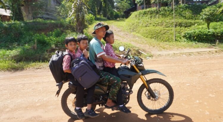 Kotawaringin Timur β Kepedulian terhadap generasi penerus bangsa kembali ditunjukkan personel TMMD Reguler ke-127 Kodim 1015/Sampit dengan mengantar anak-anak sekolah di Desa Tri Buana, Kecamatan Telaga Antang, Kabupaten Kotawaringin Timur, Kamis (26/02/2026).