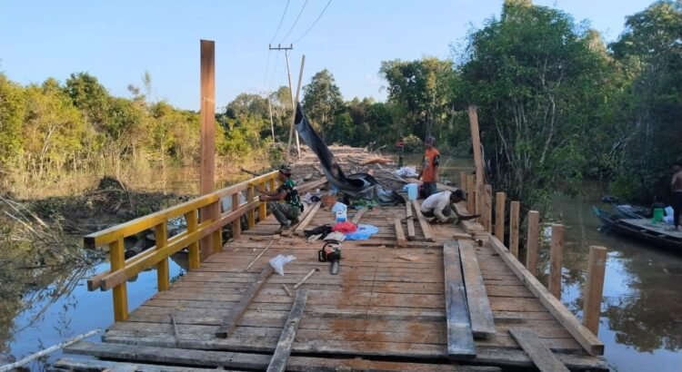 Barito Selatan, 30 Mei 2025 – Satgas TMMD ke-124 Kodim 1012/Buntok melakukan pembangunan jembatan di Jalan Desa Talio, Kecamatan Karau Kuala, Kabupaten Barito Selatan. Kegiatan ini merupakan bagian dari program TNI Manunggal Membangun Desa yang bertujuan membuka keterisolasian wilayah pedesaan.